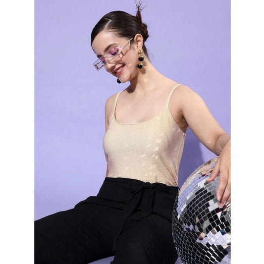 PKRKART Women's Polyester Embellished Sleeveless Jumpsuit (Gold)