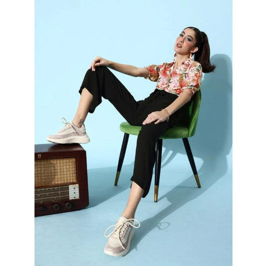 PKRKART Women's Polyester Printed Roll Up Sleeve Standard Length Shirt (Black)