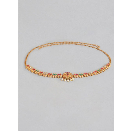 Generic Women's Rose Gold Plated Alloy Hip Belt Kamarband (Red & Green)