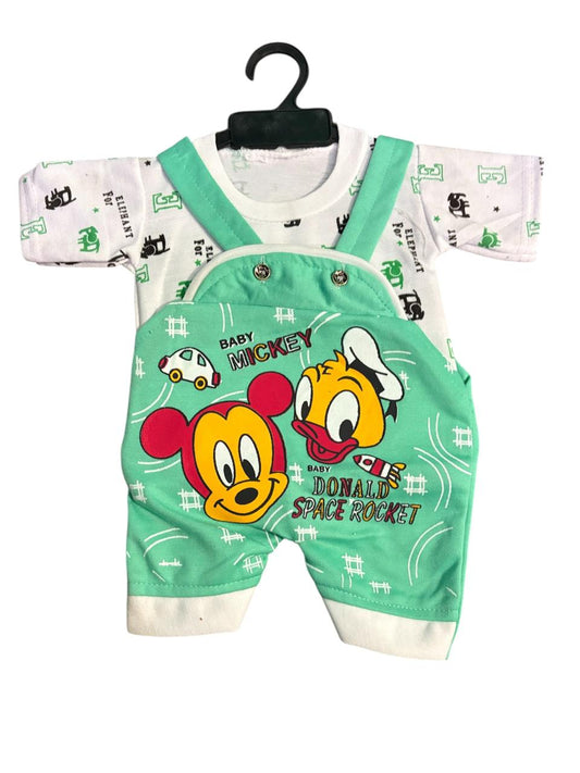 New Born Baby Boy's And Baby Girl's Cotton Denim Dungaree Dress Clothing Set (0-6 Months, green