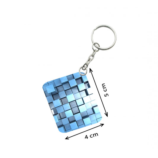 PKR Kart Pack Of 3_ Blue Cubes One Side Printed Rectangle Designer Keychain (Blue)
