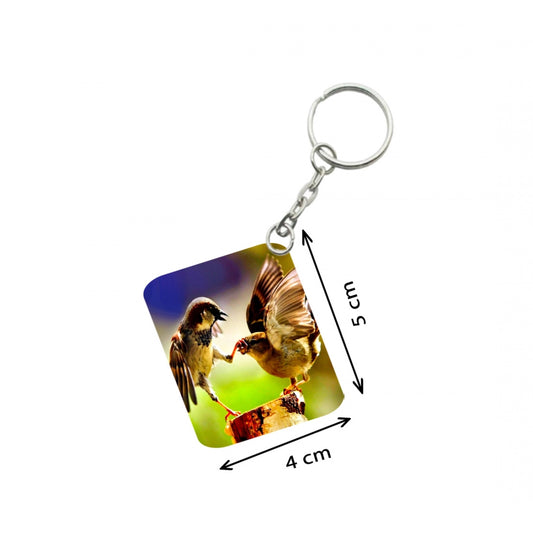PKR Kart Pack Of 3_ Birds Love One Side Printed Rectangle Designer Keychain (Multi Color)