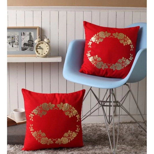 PKR Kart Pack Of_2 Cotton Printed Cushion Cover Sets (Red, Size: 16x16 In)