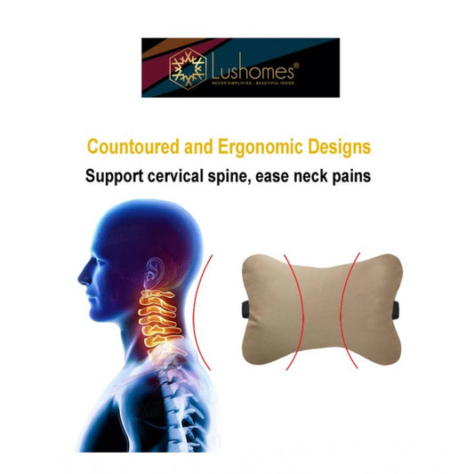 PKR Kart Pack Of_2 Polyester Solid Bone Neck Pillow (Ligtht Brown, Size: 7x11 In)
