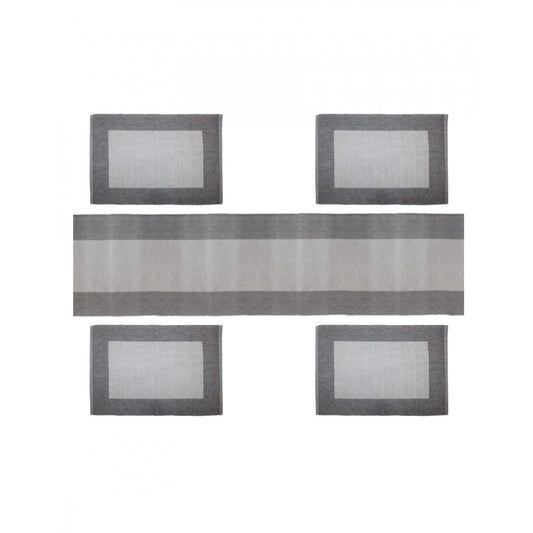 PKR Kart Ribbed Cotton Table Runner and Placemats Sets (Grey)