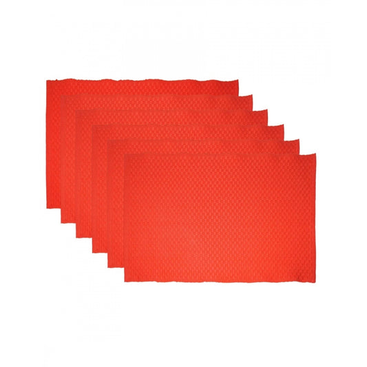 PKR Kart Solid Cotton Place Mats and Napkin Sets (Red)