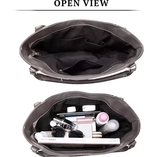 Generic Women's PU Leather Large Shoulder Zipper Handbag (Grey)