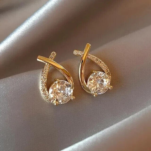 TEULRIP Gold-Plated Stainless Steel Rhinestone Studded Studs Earrings