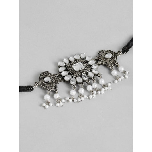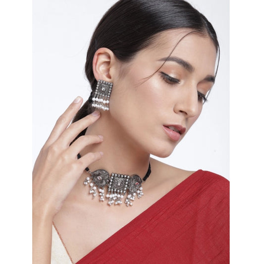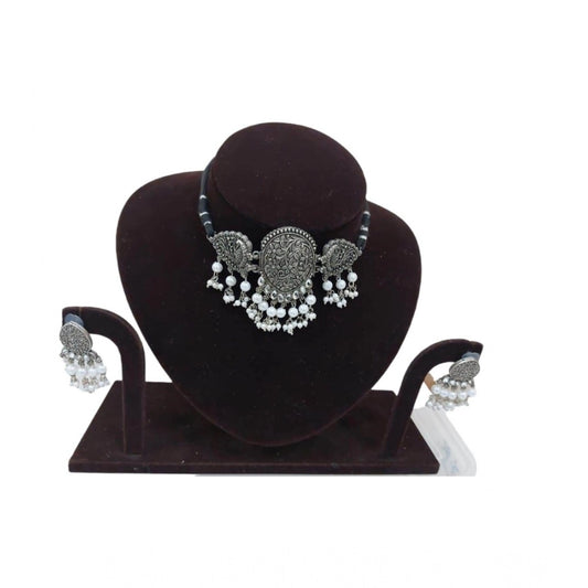 High Finished Black Beads and Oxidized Silver Pendant Designer Necklace