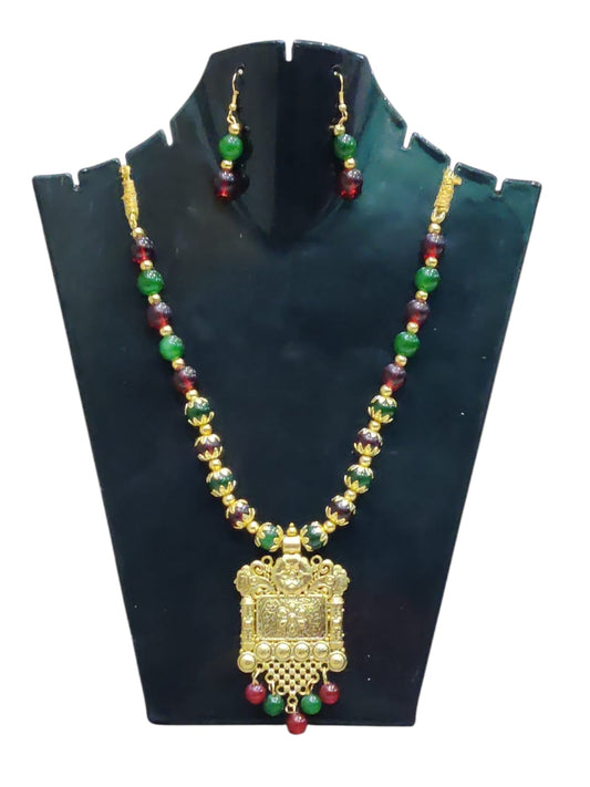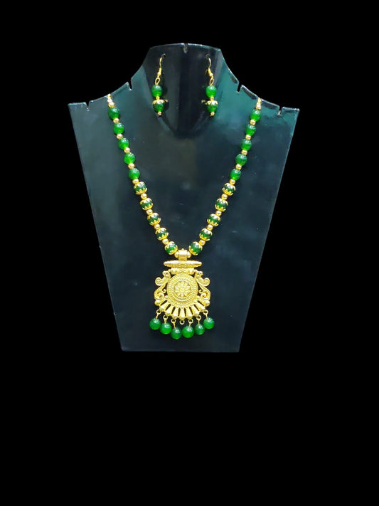 Green & gold colour Long oxidised necklace golden oxidised jewellery set for women and girls