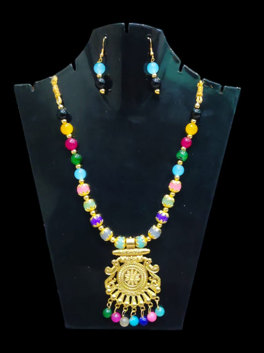 Multi colour Long oxidised necklace golden oxidised jewellery set for women and girls