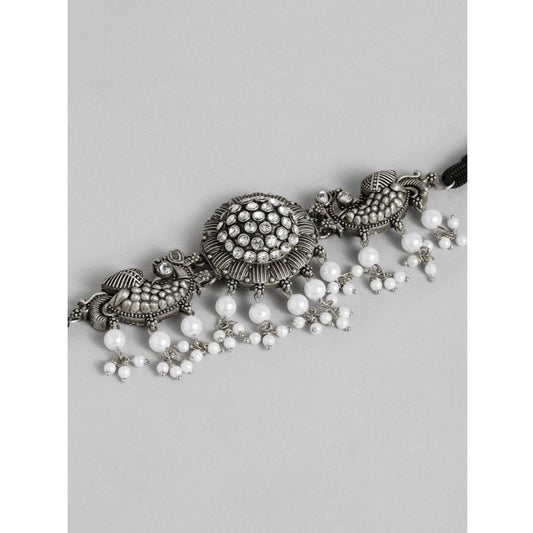 Generic Women's Rose Gold Plated Alloy Necklace & Earings Set (Silver & Black)
