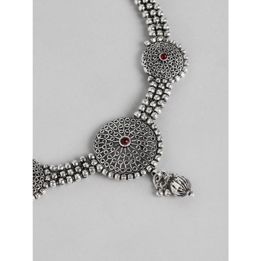 Generic Women's Rose Gold Plated Alloy Necklace & Earings Set (Red)
