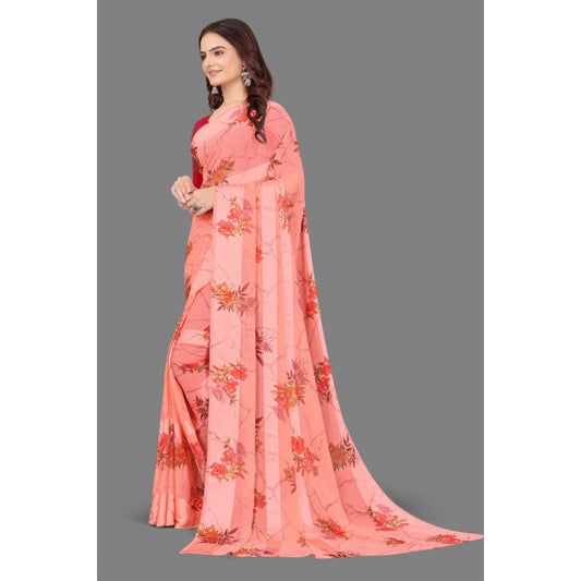 pkrkart Women's Satin Patta Printed Saree With Unstitched Blouse (Peach)