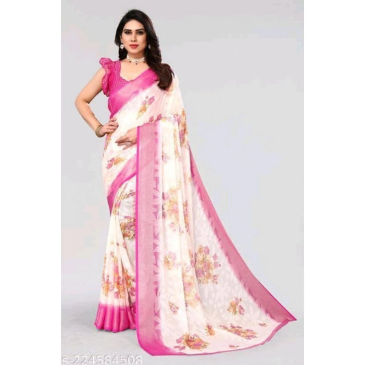 pkrkart Women's Viscose Rayon Printed Saree With Unstitched Blouse (Pink)