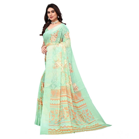pkrkart Women's Viscose Rayon Printed Saree With Unstitched Blouse (Pista)