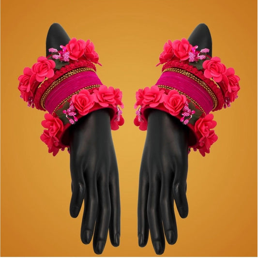Generic Women's Rani Color Floral Bangles Set: 2.4