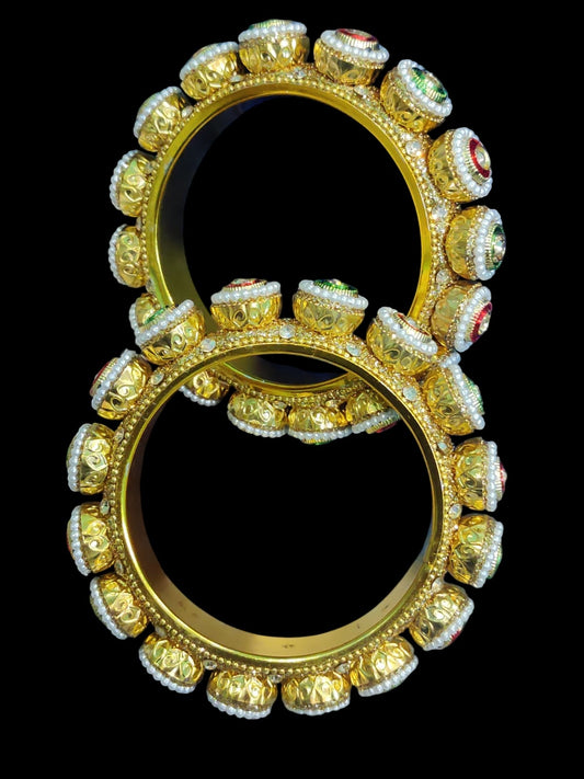 SAVE 42%Golden red and green rajwadi bangles
