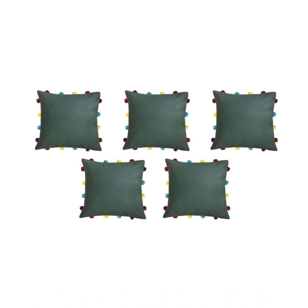 PKR Kart Cotton Solid Pom Pom Cushion Covers (Green, Size: 14x14 In)